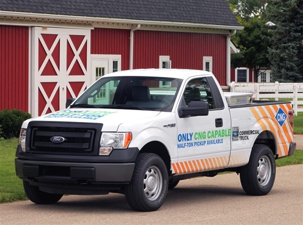 Ford has announced that the 2014 F-150 pickup with a 3.7-liter V6 engine will become its latest vehicle to offer a new dual-fuel option that will permit it to operate on compressed natural gas or liquefied petroleum gas as well as on regular pump gasoline. The ability for the 2014 F-150 to run on either of these cleaner-burning and lower-cost alternatives to gasoline will earn Ford bragging rights as being the only manufacturer to offer a CNG/LPG-capable half-ton pickup.