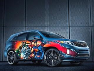 The eighth and final Kia vehicle prepared as a mobile homage to the members of DC Entertainment's Justice League was revealed at the annual Comic-Con convention that opened in San Diego last night. Like the previous seven custom Kias that had been presented over the course of the last 10 months at various high-profile events, this one-off 2014 Sorento CUV was created to help support DC's ongoing involvement in the "We Can Be Heroes" giving campaign to raise awareness and help combat the hunger crisis in the Horn of Africa. Following the grand unveiling, it was announced the car would be the star of a 10-day online charity auction on eBay which will directly benefit the "We Can Be Heroes" campaign.