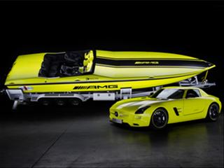 Sometimes pretty interesting things can happen when worlds collide. The latest is a high-velocity matchup that involves a collaborative effort between Mercedes-AMG, maker of some of the world's fastest automobiles and Cigarette Racing, creator of some of the world quickest off-shore performance watercraft. Presented today at the opening of the Miami International Boat Show, the "Cigarette AMG Electric Drive Concept" uses numerous powertrain elements culled from the 2014 SLS AMG Coupé Electric Drive. The end product - a sleek 38-foot exercise finished in eye-scorching AMG Electricbeam magno paint and sporting giant AMG logos on its side - produces a total of 1,656 kilowatts (2,221 horsepower) and 2,213 lb-ft of torque. That formidable might is sufficient to take this super-green seafarer to speeds in excess of 100 mph, which Mercedes and Cigarette say make it both the world's most powerful and the fastest electrically-driven motor boat.
