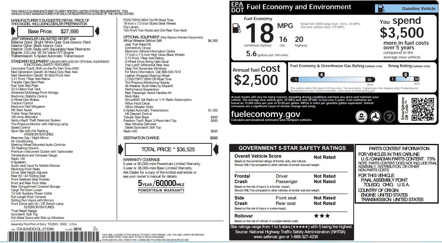 - 3.6L 6-Cylinder Gas Engine