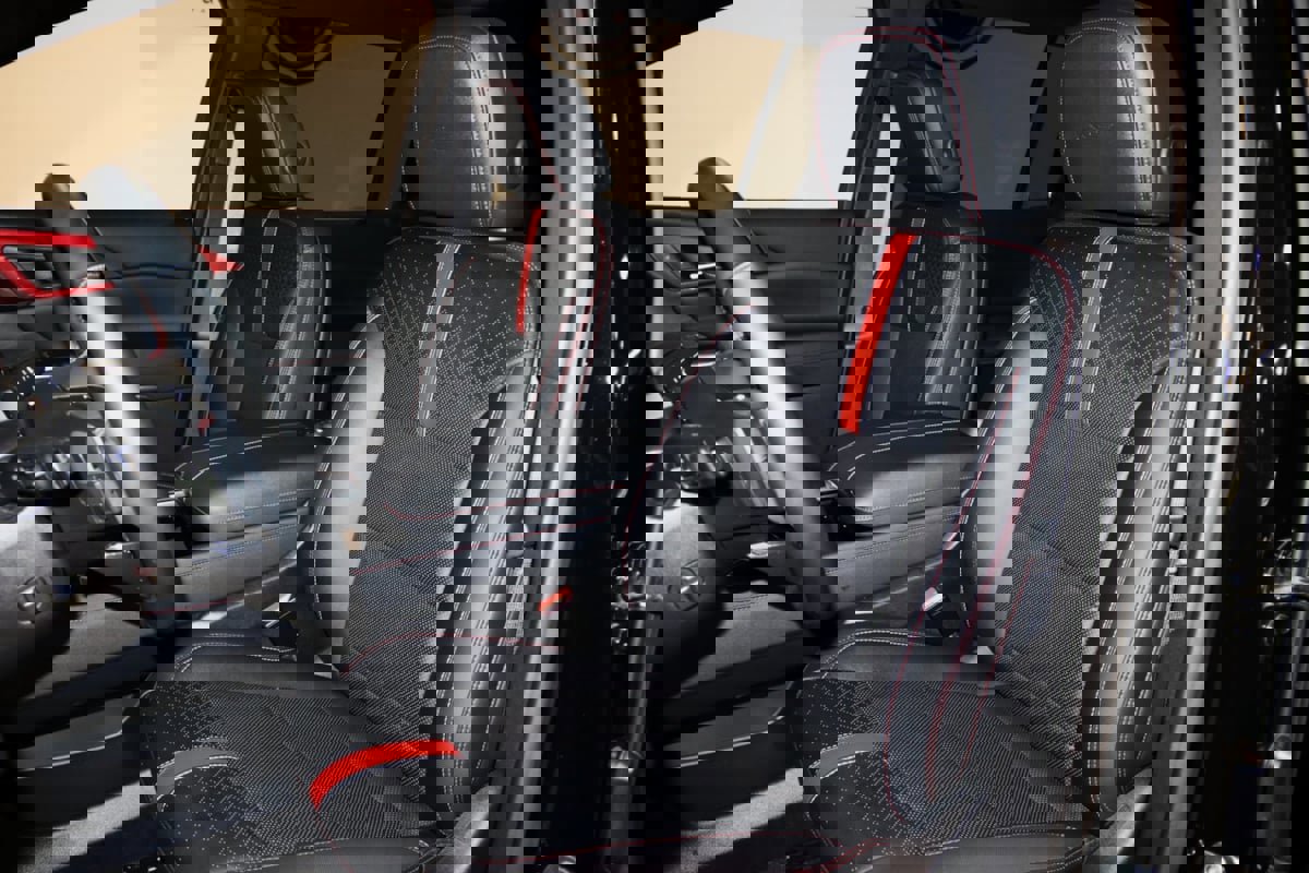 - ÂJet Black With Torch Red Accen Leather Seats