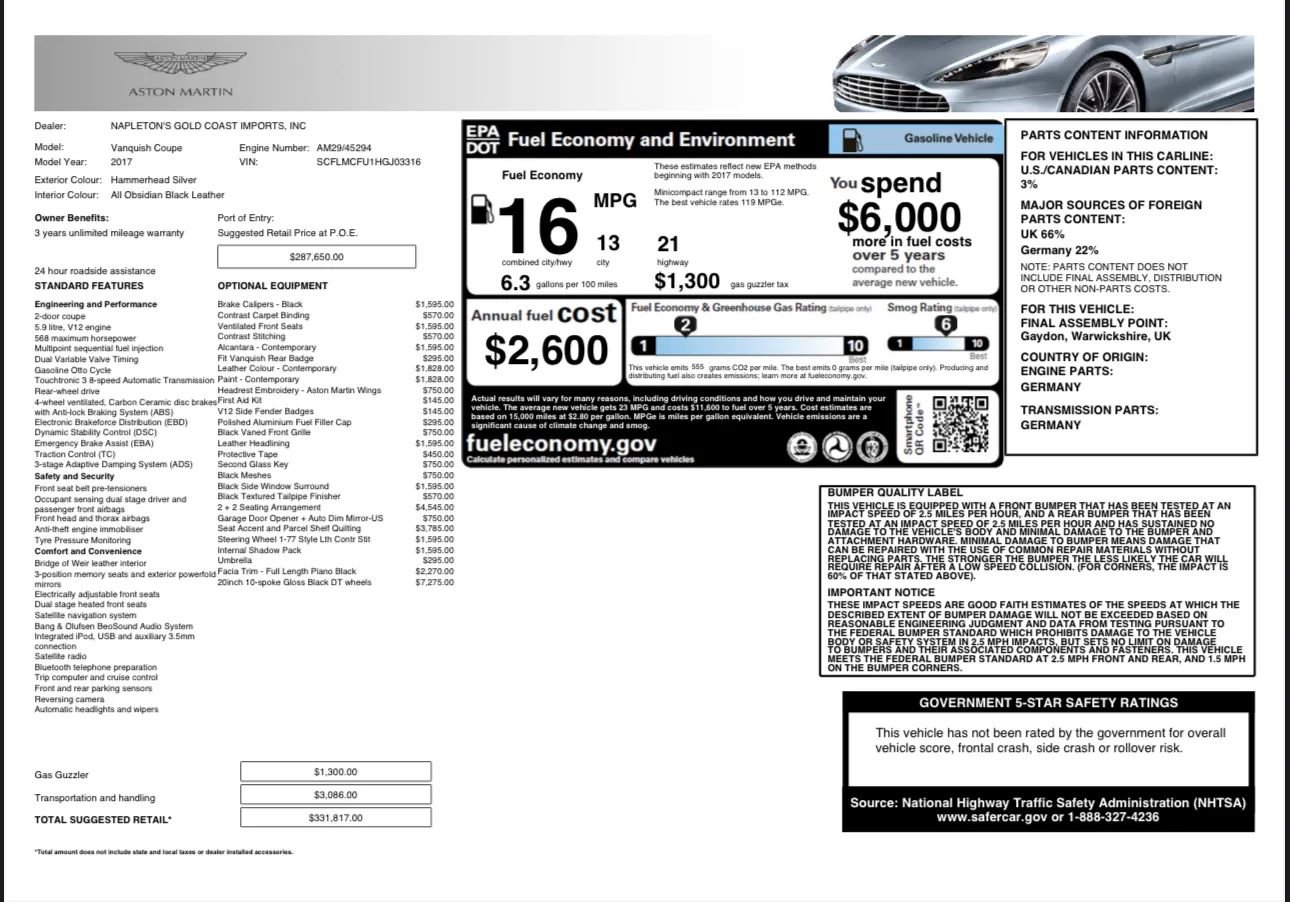 Used 2017 Aston Martin Vanquish Coupe