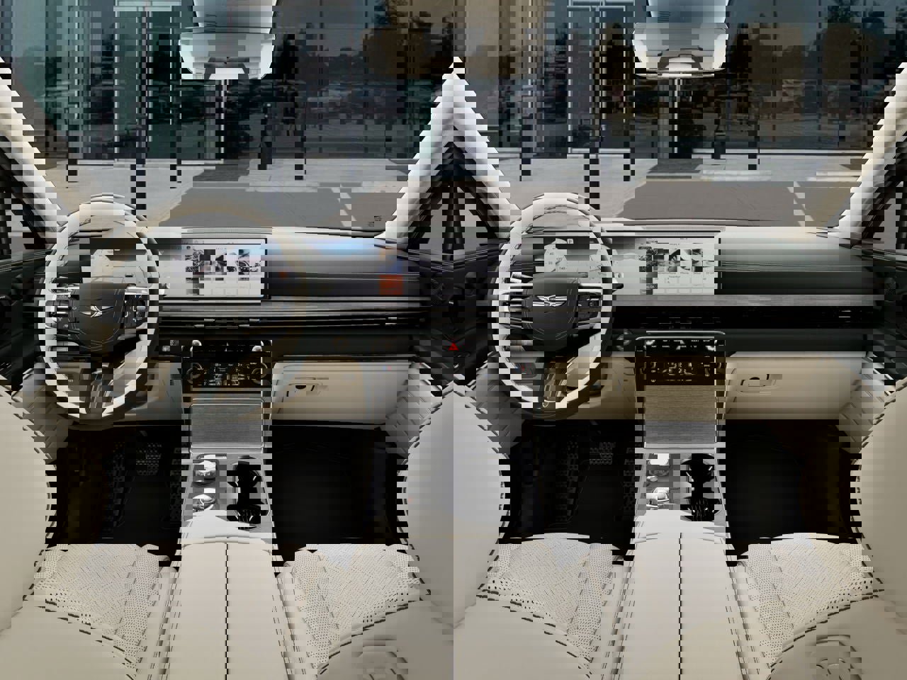 - ÂVanilla Beige/Smoky Green Leather Seats