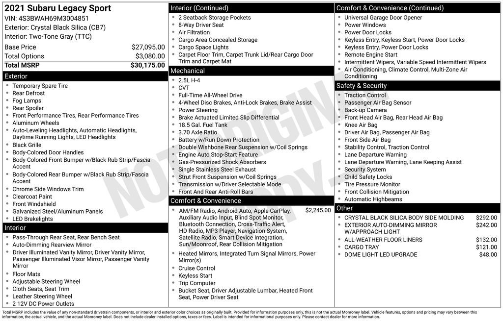 Used 2021 Subaru Legacy 2.5i Sport