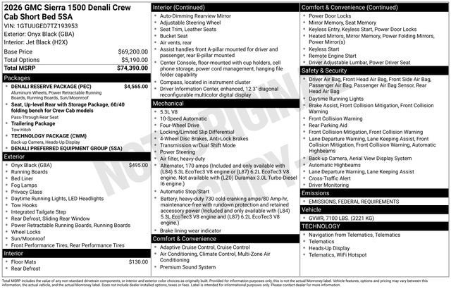 New 2026 GMC Sierra 1500 Denali w/ Denali Reserve Package