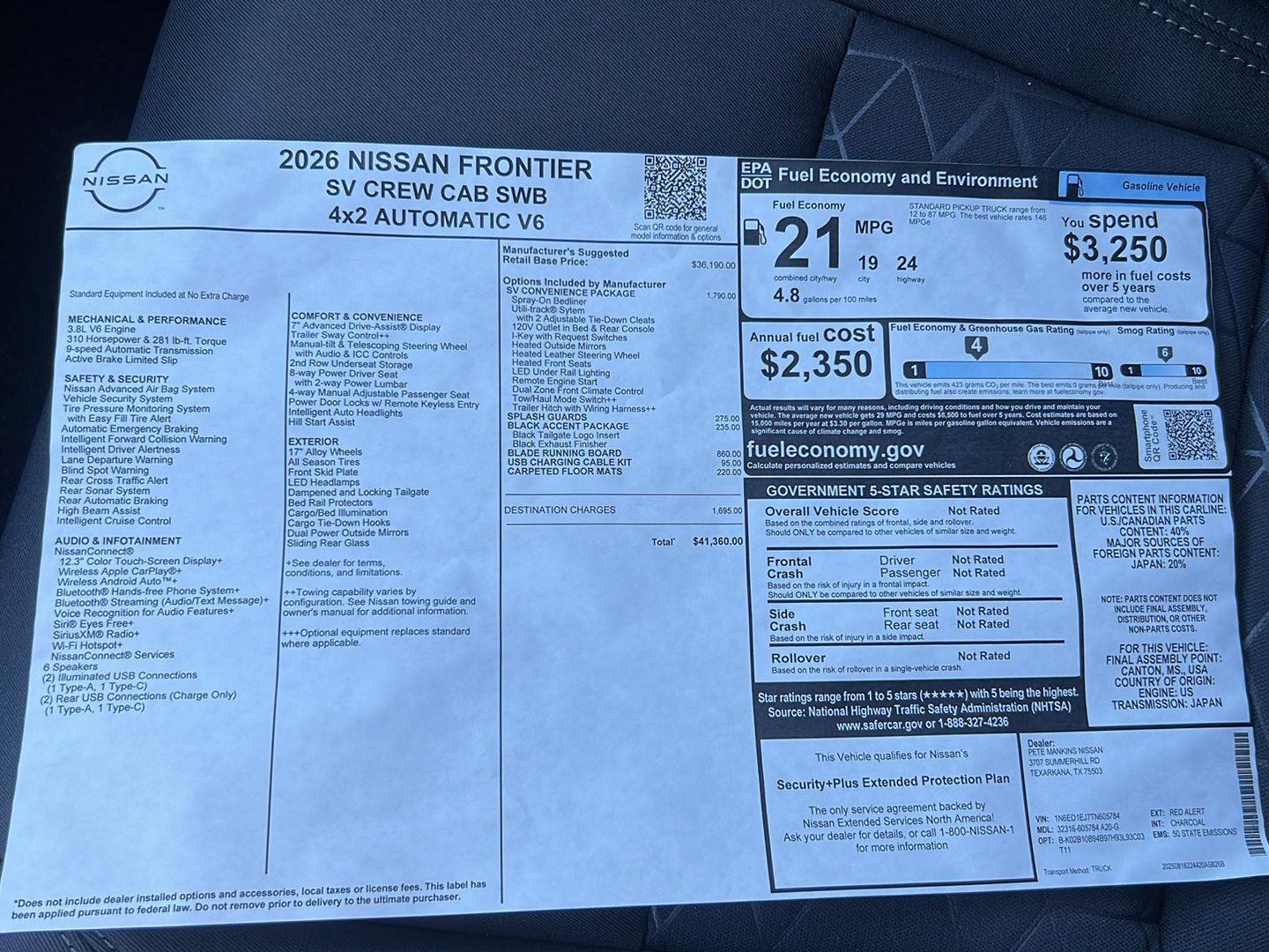 New 2026 Nissan Frontier SV w/ SV Convenience Package