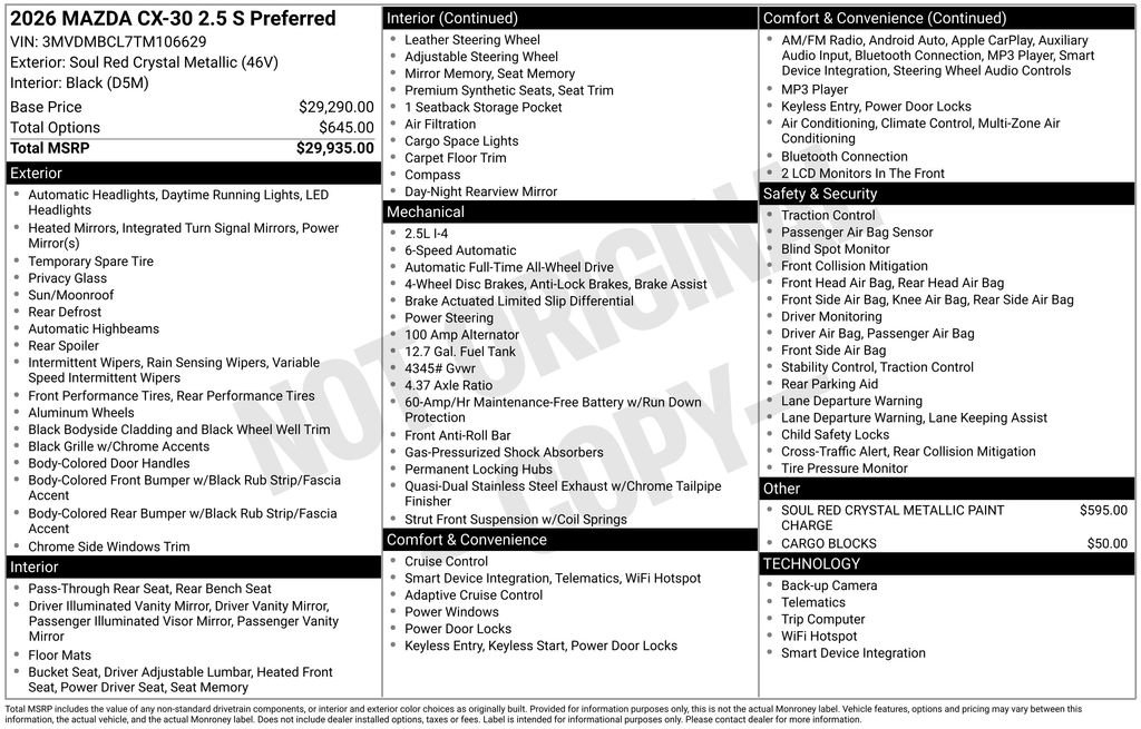 New 2026 MAZDA CX-30 AWD 2.5 S