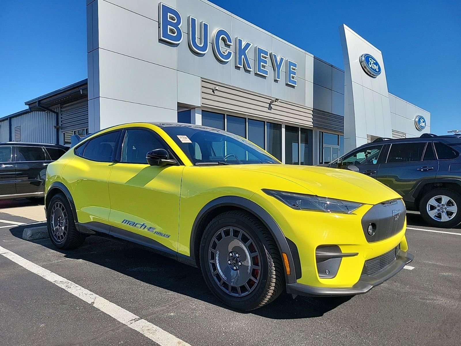 1st & 2nd Row Floor Liners w/o Carpet MatsAndroid AutoApple CarPlayApple CarPlay/Android AutoBlack Painted Steel RoofCargo Floor LinerDoorEquipment Group 400A Standard PackageFord Performance Front SeatsFront anti-roll barHeated Perforated ActiveX Performance SeatsHood & Decklid Stripe DeleteIlluminated entryInterior Protection PackageInternet access capable: FordPass ConnectMach-E Rally Door GraphicsMobile Power Cord (120V/240V)Mustang Mach-E GT Performance UpgradeMustang Mach-E RallyNavigation system: Connected NavigationOutside temperature displayOxford White Steering Wheel/Door/IP Interior TrimRallySport Drive ModeRallycross-Tuned MagneRide Damping SystemRear anti-roll barRoof & Bumper TrimSYNC 4A w/Enhanced Voice RecognitionUnique Front Splitter in Dark Carbonized GrayUnique Grille Shield in Dark Carbonized GrayUnique Raised Rear Spoiler in Dark Carbonized GrayWheelWheels: 19" High Gloss Dark Carbonized Gray