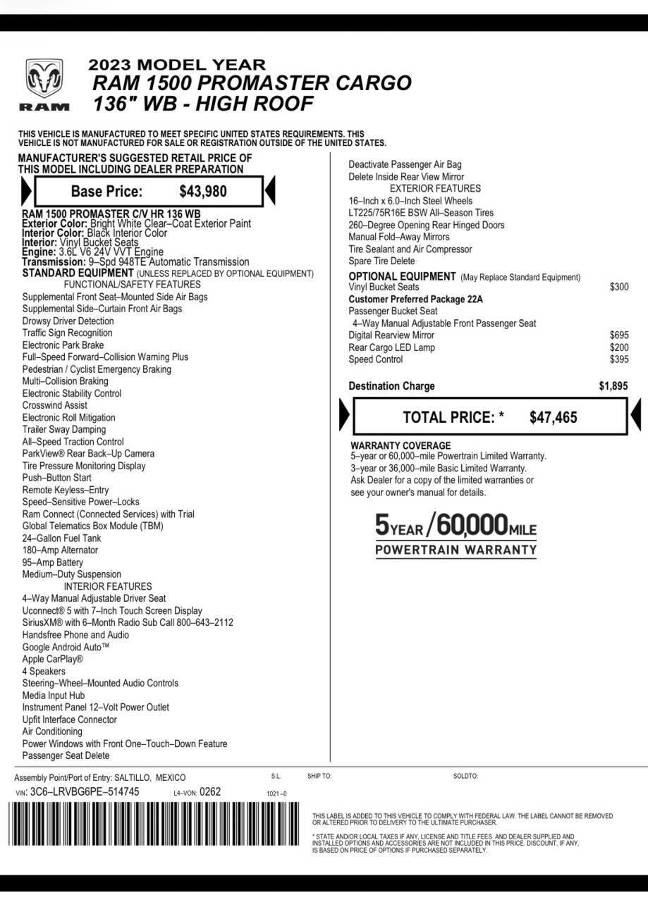 2023 RAM ProMaster 1500
