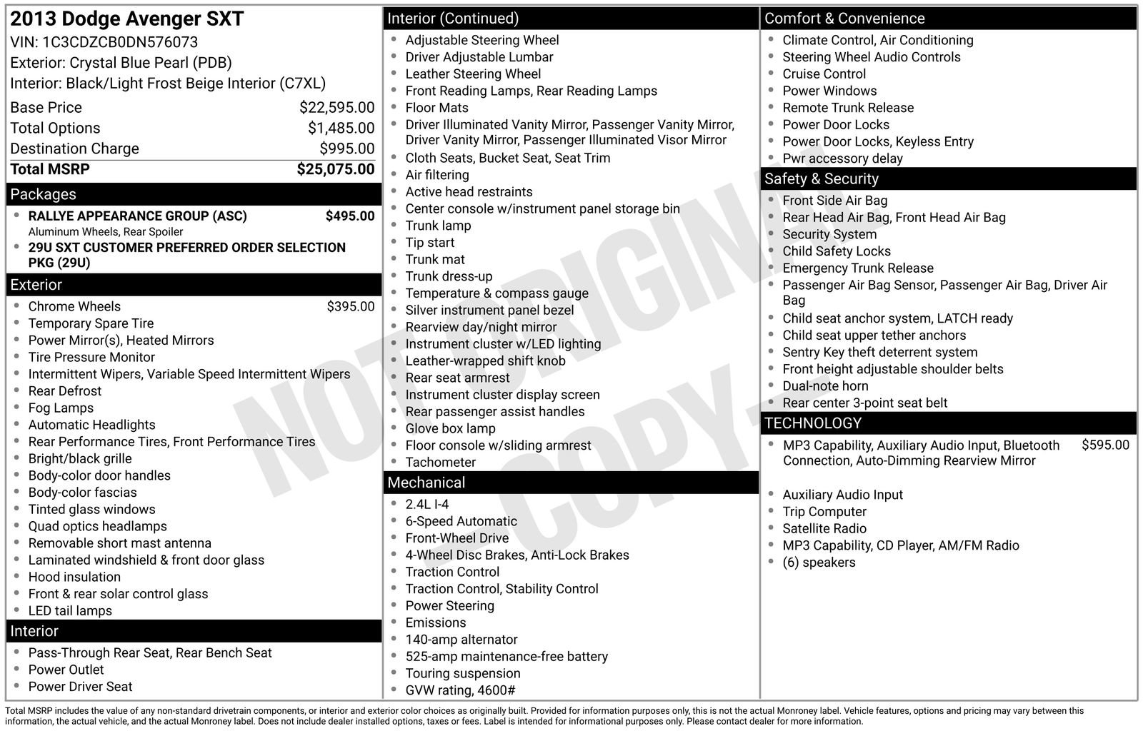 Take a closer look at the defining details of the 2013 Dodge Avenger SXT w/ Rallye Appearance Group FWD like comfort, tech, and performance that make every drive feel like an upgrade. See the full list of vehicle features and find what fits your life.