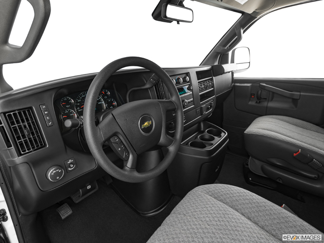 Don’t expect anything fancy in this interior. There are no heated or ventilated seats, no leather seating option, and no modern infotainment tech. We especially miss the Android Auto and Apple CarPlay smartphone interface. The LT trim of the passenger van adds some creature comforts, such as standard cloth upholstery and carpeted flooring rather than vinyl, but that’s about as luxurious as it gets.