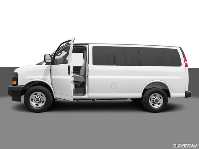 The passenger van seats 12 with the standard wheelbase and 15 with the extended wheelbase. We prefer the nicer LT trim in the passenger van, which adds some creature comforts like standard cloth seating, carpeted flooring, and a deluxe center console, but it’s still a pretty no-nonsense van with only a smattering of modern tech.