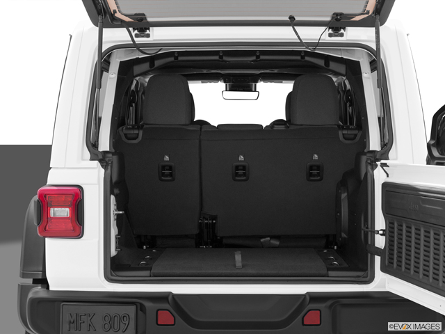 As for interior space, the Wrangler is pretty roomy for its size thanks to its boxy shape. Rear-seat room is a bit compromised in the 2-door model, and it’s not hard to see why the more practical 4-door Wrangler is the more popular body style. Also note that 2-door models only seat four people, while the 4-door Wrangler is more family-friendly and can accommodate five.