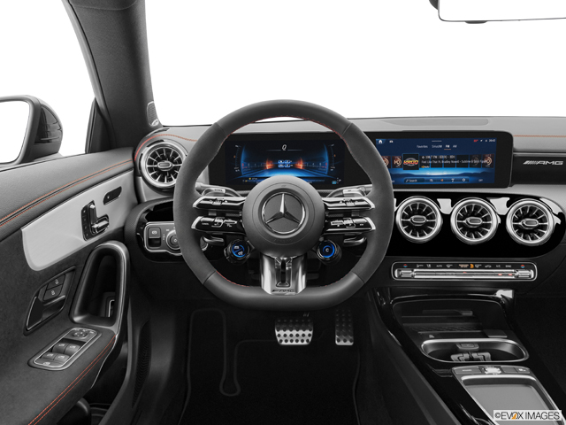 Both versions of the 2025 AMG CLA have a 2.0-liter turbocharged 4-cylinder unit plus a belt-driven starter-generator electric motor. This makes the fuel-saving stop/restart function much smoother and enables a coasting function to conserve yet more premium gasoline (recommended for both cars). It also helps the engine reach its peak output quickly and efficiently. The CLA 35 develops a perfectly energetic 302 hp and 295 lb-ft of torque.