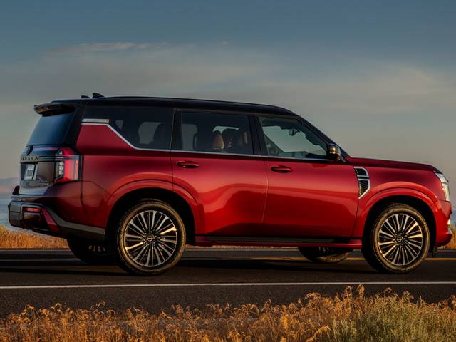 The first-ever Nissan Armada NISMO joins the lineup for 2026. The high-output tuning of its turbo V6 adds 35 horsepower, bringing its output to 460 hp. Other upgrades include a sporty appearance package inside and out with lots of red trim and sporty enhancements to the exhaust, steering, suspension, and tires.