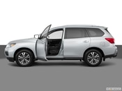 All-wheel drive is optional on all versions of the 2019 Pathfinder crossover SUV. The SV becomes eligible for more extras, such as blind-spot monitoring with rear cross-traffic alert, adaptive cruise control, navigation, heated steering wheel/front seats/side mirrors, and a towing package. The SL has those driver aids as standard, along with leather upholstery and the motion-activated tailgate, while options include 20-inch alloy wheels, 13-speaker Bose audio, and the dual-pane panoramic moonroof. The Platinum has virtually all these features included in the price, with a rear-seat entertainment system as one of the few extras.
