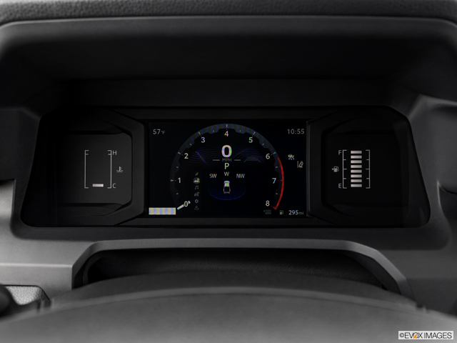 The interior uses chunky knobs and angular beveled edges to emphasize the utility of the Tacoma. It’s an intuitive setup with plenty of modern features. A 14-inch infotainment touchscreen is available, as is a 12.3-inch instrument cluster. Other options include wireless charging and a 10-speaker JBL audio system.